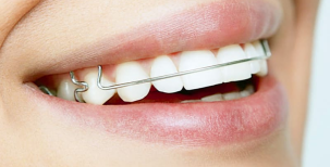 Устройство в виде замочков на зубах, которые фиксируются при помощи ортодонтического клея (бонда) на наружную или внутреннюю поверхность зубов и объединяющей их дуги.