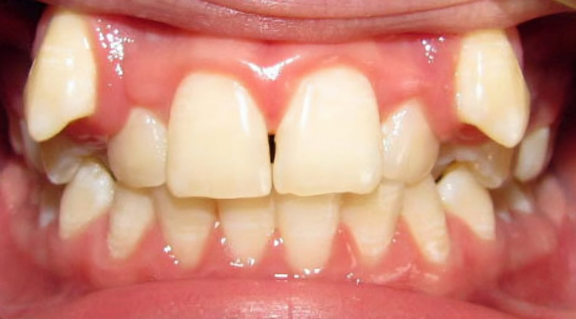 Клыки “улыбка вампира” Клыки растут из десны, перекрывая верхние передние зубы